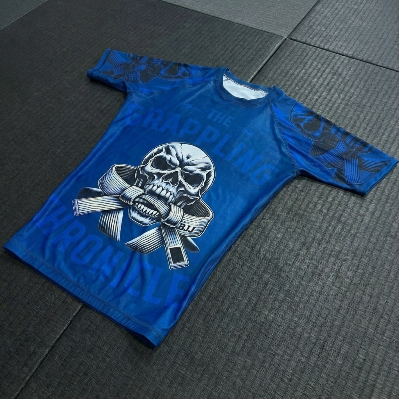 ''The Grappling Chronicles'' representa el punto en el que ya no queda ego ni excusas. La calavera simboliza la esencia del guerrero: cuando el cuerpo falla, la mente decide seguir. El cinturón apretado refleja la presión del Jiu-Jitsu, esos momentos límite donde rendirse parece fácil, pero continuar define quién eres.